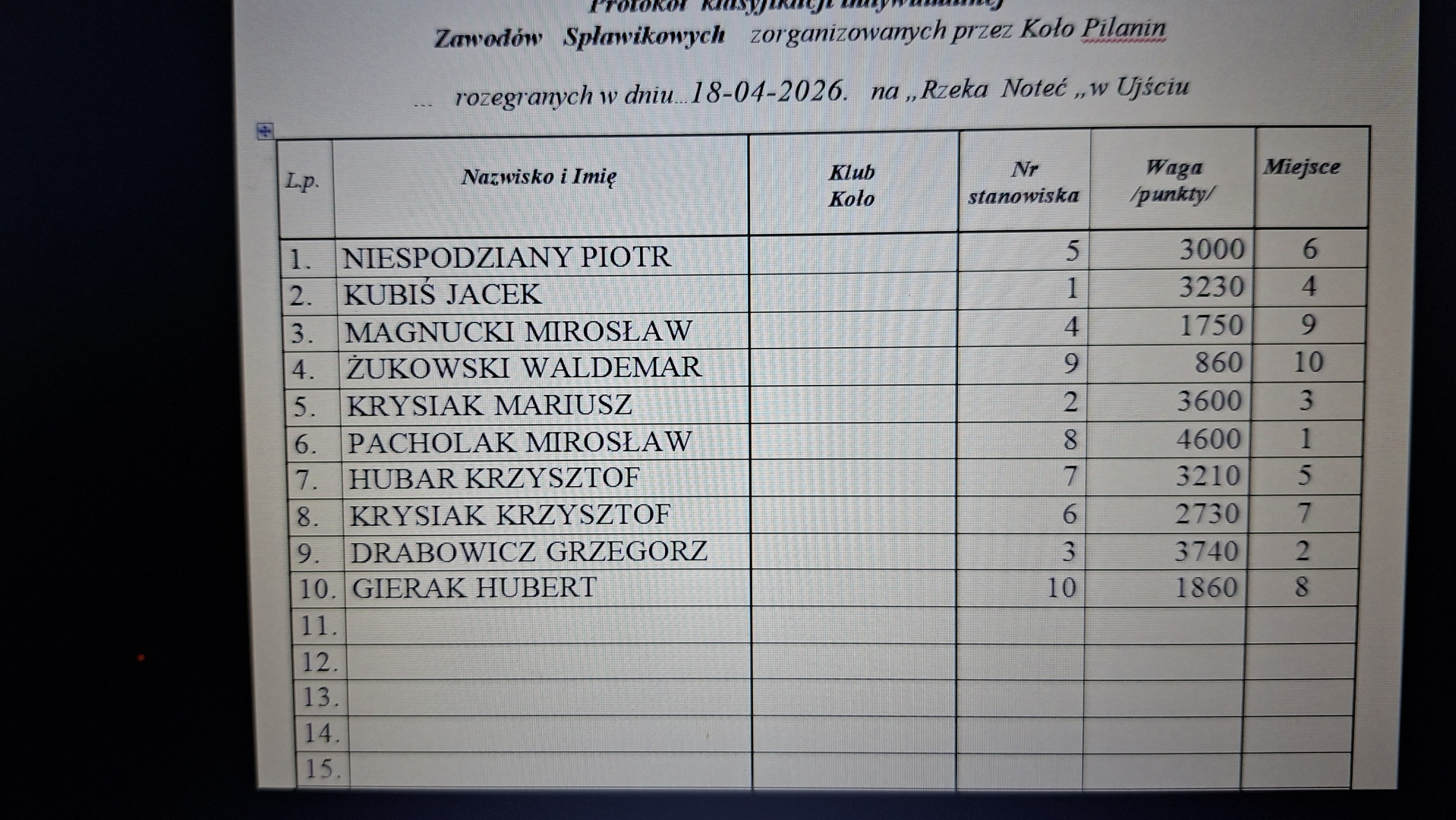 ZMIANA GODZINY ROZPOCZĘCIA ZAWODÓW 18-04-2026